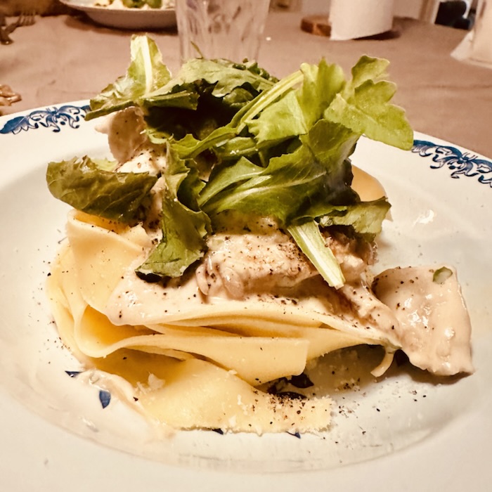 - Servera med färsk tagliatelle och rucola.