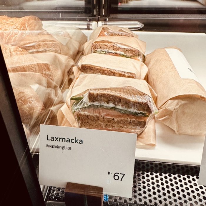 Sällan man hittar något matigt glutenfritt på Starbucks, men noterade laxmackor inplastade helt plötsligt på Hamngatan. Dock inget glutenfritt bakverk i sikte.