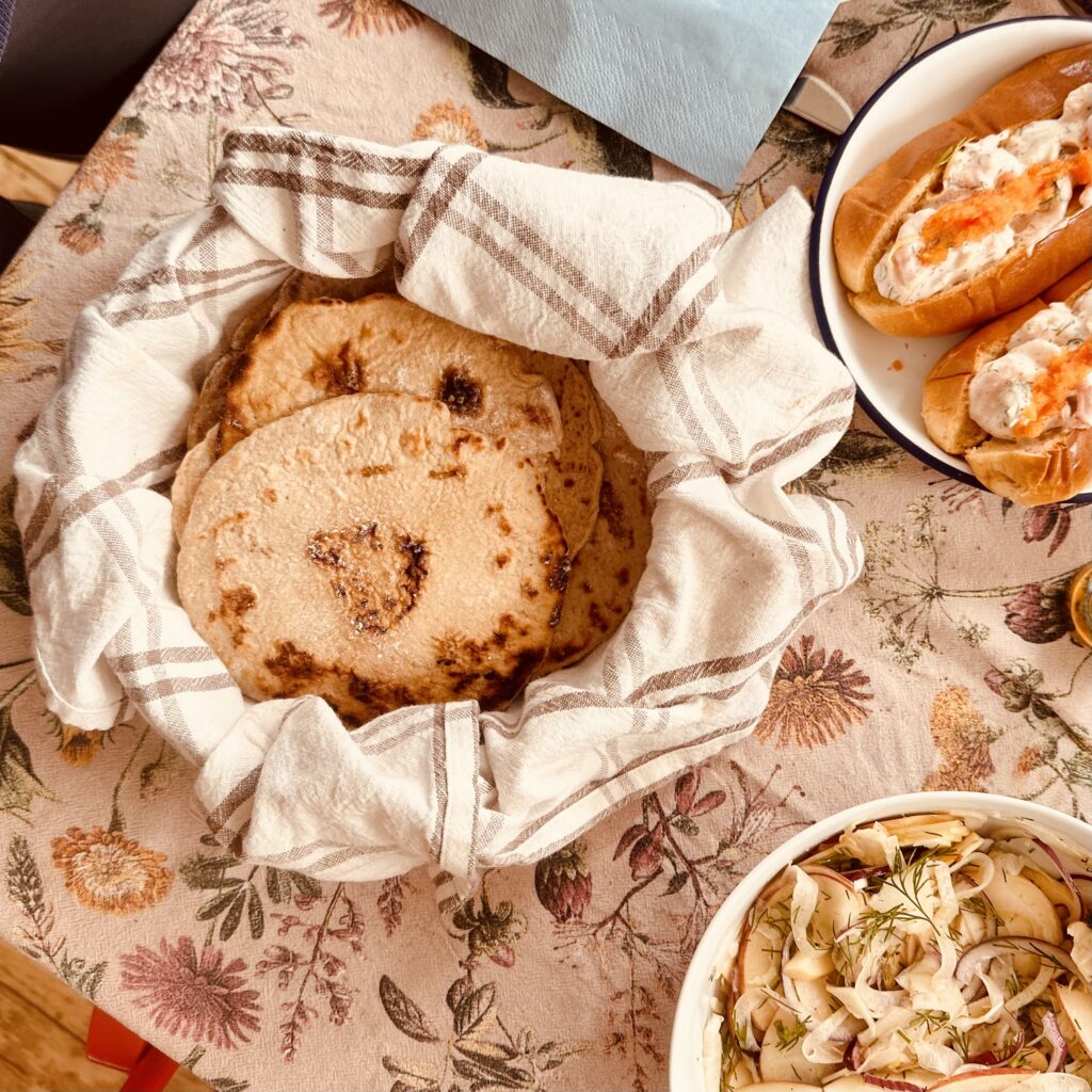 Provat ny glutenfri brödmix. Tänkt som tunnbröd. Rullade små bollar som trycktes ut i vår tortillapress innan de stektes i stekpannan. Godast samma dag. Blev tyvärr ganska sega och hårda efter någon dag. Men var oväntat ”o-smuligt” för att vara glutenfritt. Påminner lite om när vi testade att göra glutenfri tuttul, fast betydligt enklare.